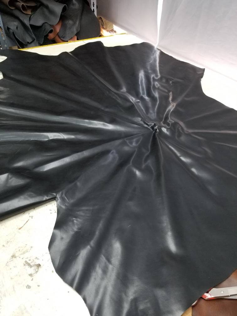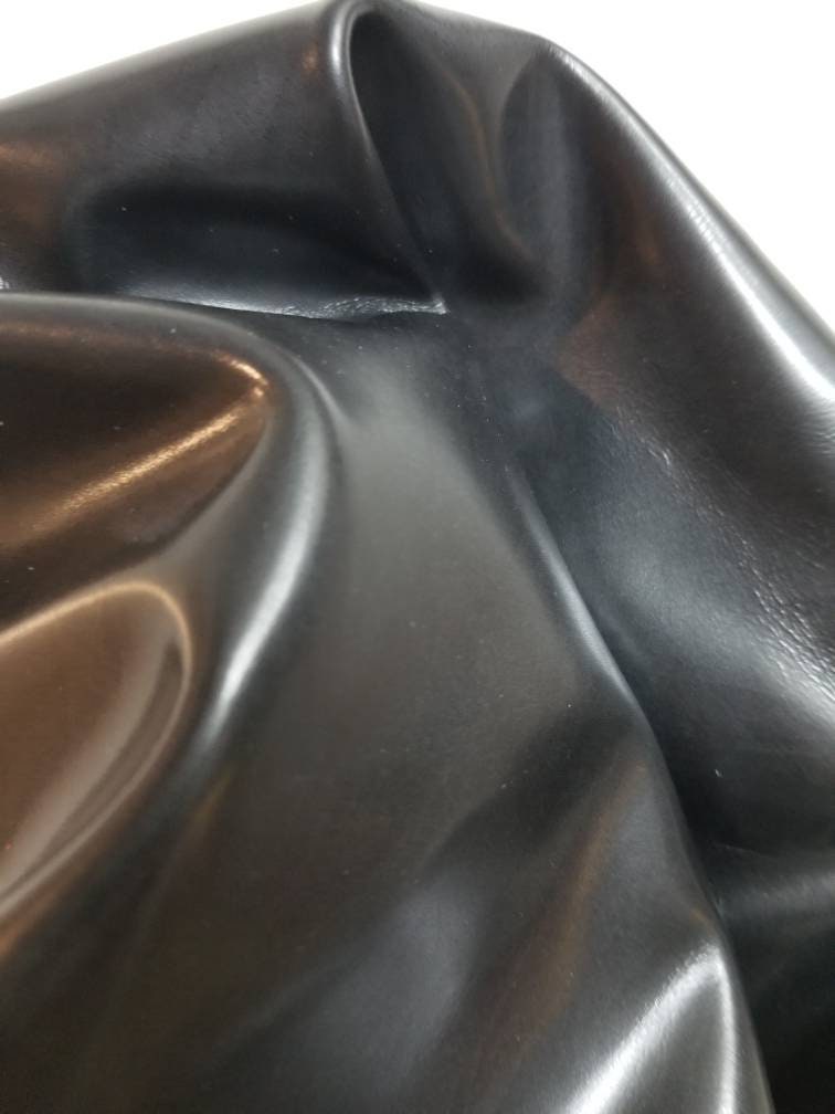 Leather one of a kind 10 sq.ft. Black calfskin high shine box soft thin nappa smooth 2.0 oz 1.0 mm semi aniline hide leather